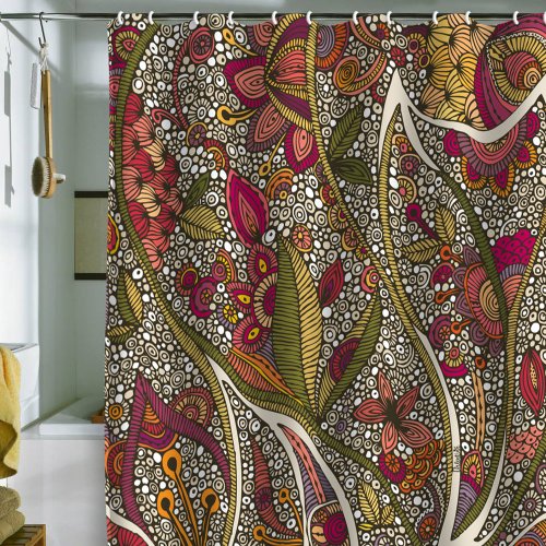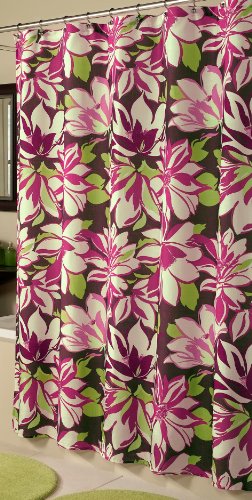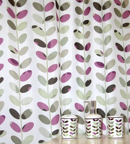 Channel your inner home fashionista with the most important print of the year Beautiful vine design is perfect of adding a little color and excitement to your current décor. Shower curtain 100-Percent Polyester measures 70 by 72, machine wash warm and tumble dry. Tumbler measures 4-1/4 by 3-1/4 by 3-1/4. Toothbrush measures 4-1/4 by 3-1/4 by 3-1/4. Lotion dispenser measures 4-1/4 by 3-1/4 by 3-1/4, wash with a damp cloth .Plastic12 piece hooks, measures 7 by 3-1/2 by 2-3/4.You will not be disappointed with
