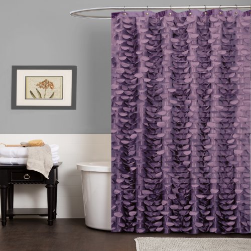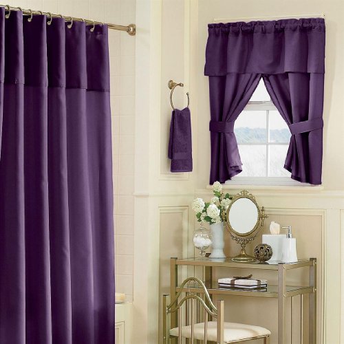 - Colorful vines plum 16pc bath set includes polyester shower curtain 70'' by 72'', ceramic tumbler, toothbrush holder, lotion dispenser and 12 piece plastic hooks.