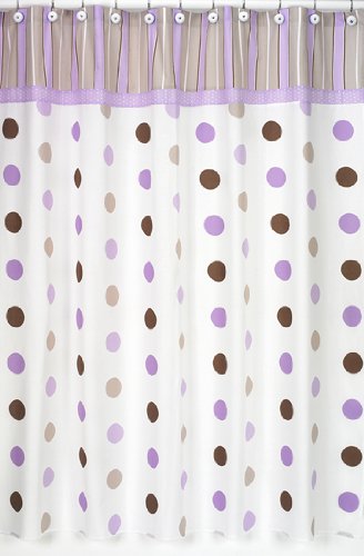 Create an easy bathroom makeover with this Sweet Jojo Designs shower curtain. Add a touch of style and a splash of color to your bathroom with this designer collection. Pair with coordinating JoJo childrens bath towel sets and room accessories to complete the look and feel of your favorite theme.You will not be disappointed with Purple and Brown Mod Dots Kids Bathroom Fabric Bath Shower Curtain by Sweet Jojo Designs